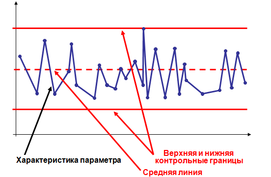 У любой контрольной карты есть основные элементы, изображенные на Рис. 6:
