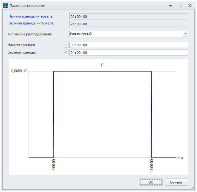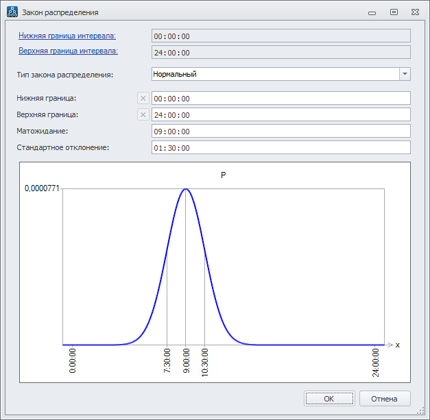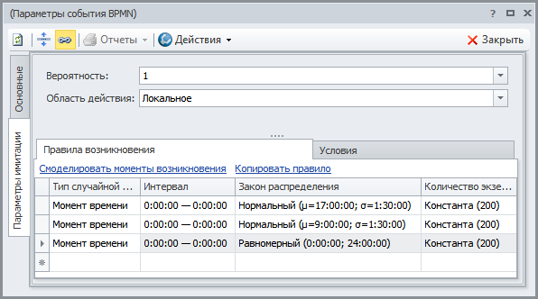 Распределение моментов времени возникновения экземпляров стартового события зададим законом распределения.