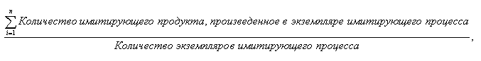 | Среднее производимое количество | Среднее количество имитирующего продукта, производимое при выполнении экземпляра имитирующего процесса. Параметр рассчитывается по формуле: где n - количество экземпляров имитирующего процесса. В значении параметра учитываются только завершенные экземпляры имитирующего процесса. |