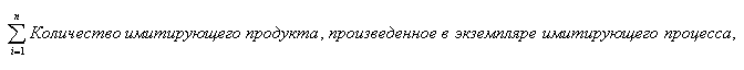| Суммарное произведенное количество | Суммарное количество имитирующего продукта, произведенное за время имитации при выполнении экземпляров имитирующего процесса. Параметр рассчитывается по формуле: где n - количество экземпляров имитирующего процесса. В значении параметра учитываются завершенные экземпляры имитирующего процесса и те, которые на момент окончания имитации находились на стадии выполнения. |