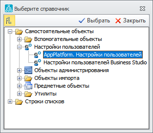 Рисунок 1. Открытие справочника "AppPlatform. Настройки пользователей"