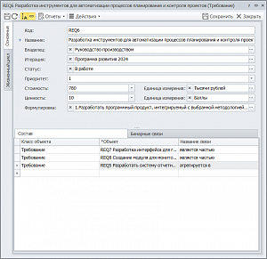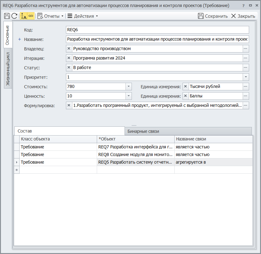 В Business Studio в рамках модуля «Управление требованиями» реализованы: